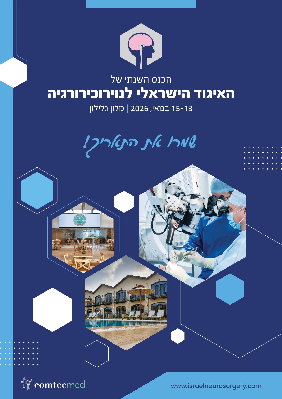 לאלבום תמונות הכנס 2025 לחצו כאן תכנית הכנס ותכנית מושב סיעוד 2025 חדשות האיגוד הכנס השנתי של האיגוד הישראלי לנוירוכירורגיה 15-13 במאי, 2026 | מלון גלילון להמשך צפייה>> תמונות הכנס השנתי | מאי, 2025 תיעוד הרצאות הכנס השנתי להמשך צפייה>> הכנס השנתי של האיגוד הישראלי לנוירוכירורגיה, 7-9 במאי, 2025, GENERAL INFORMATION GENERAL INFORMATION להמשך צפייה>> הודעות נוספות סיקור הכנס 2023 Convention 2023 coverage כנסים מומלציםאין אירועים יומן אירועים וכנסים כל קטגוריות אירוע #a8d144 - כנס שנתי#a8d144 - כנסים בארץ#a8d144 - אירועים בינלאומיים#FFFFFF - לימודי המשך מידע כללי:מי אנחנו חברי הועד הצטרפות ועדכון נתונים תקנון תנאי שימוש חדשות מאתר אימד בדיקת MRI עשויה לזהות חבלות צוואריות שלא זוהו בבדיקת CT זיהום אוויר מלווה בסיכון מוגבר לגידולים במערכת העצבים המרכזית אגוניסטים לקולטן ל-GLP-1 יעילים יותר ממטפורמין להפחתת הסיכון לדמנציה בחולים עם סוכרת מסוג 2 שכיחות גבוהה של דימום תוך-גולגולתי בקשישים רבים עם חבלת ראש עקב נפילה אבחנות בתחום מאתר אימד AgingCholesterol/Lipid disordersCushing diseaseDiabetesFatty LiverFracturesHypercalcemiaHypertensionHypoglycemiaMenopauseMetabolic SyndromeNeuropathyNutritional/MetabolicObesityOsteoporosisPancreatitisTestosterone DeficiencyThyroid CancerThyroid Disorders