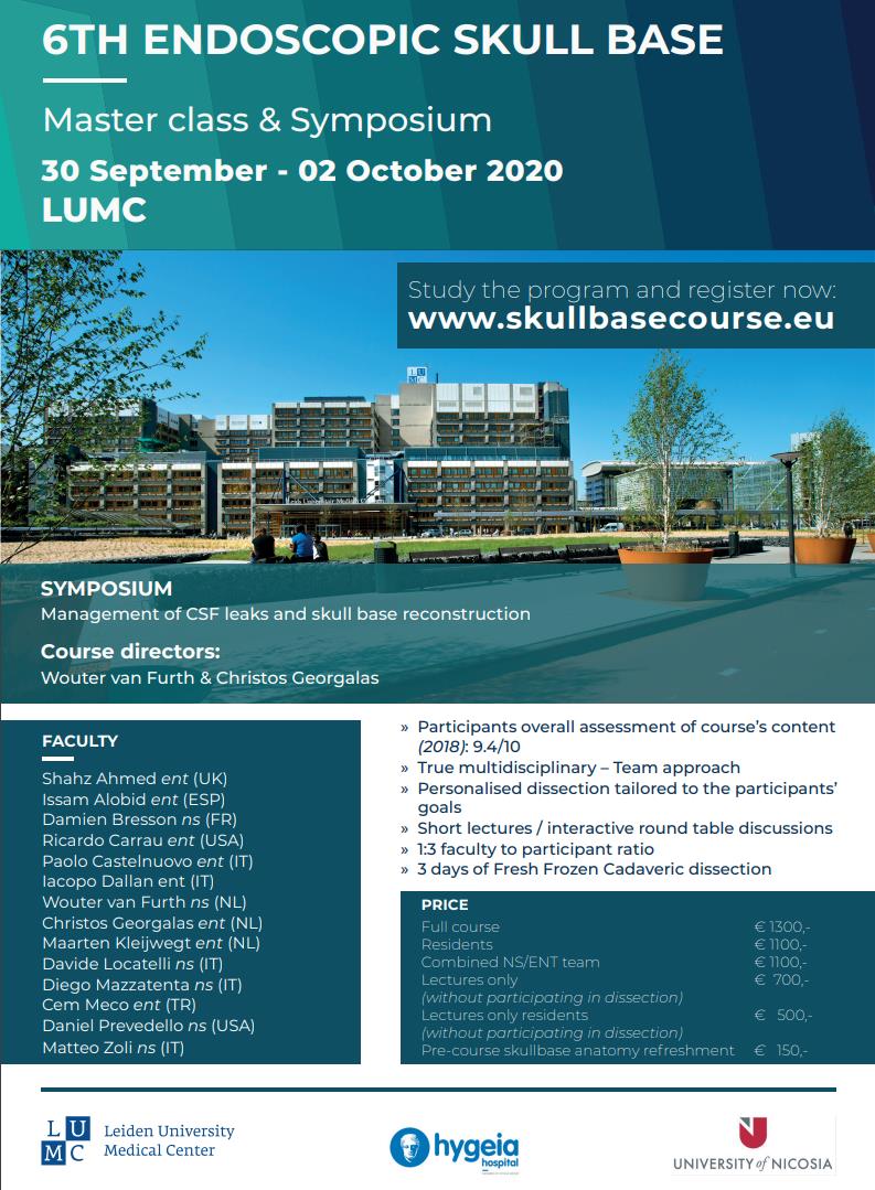 ראשי » אירוע » 6th Endoscopic Skull Base Master class & Symposium∞ Leiden, The Netherlands ∞ 30th September – 2nd October 2020 6th Endoscopic Skull Base Master class & Symposium∞ Leiden, The Netherlands ∞ 30th September – 2nd October 2020 תאריך/זמן 30/09/2020 - 02/10/2020 / 0:00 מקום:Leiden University Medical Center קטגוריות: אירועים בינלאומיים Contact and Information: course@conferencecompany.nl www.skullbasecourse.eu