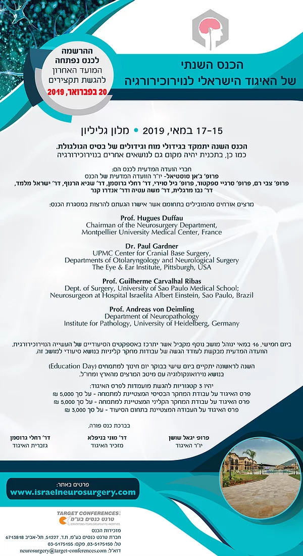 ראשי » משולחן האגודה » הכנס השנתי 2019 הכנס השנתי 2019 תאריך: 15/05/2019 - 17/05/2019 מרצים מוזמנים להמשך קריאה ← מציגים ותומכים להמשך קריאה ← מידע כללי להמשך קריאה ← ועדה מדעית להמשך קריאה ← הרשמה ולינה להמשך קריאה ← לוח זמנים טנטטיבי להמשך קריאה ← הגשת תקצירים להמשך קריאה ←